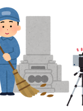 お墓の正面と左右斜め前方からの写真を、サービス前後に撮影し、ご報告いたします。